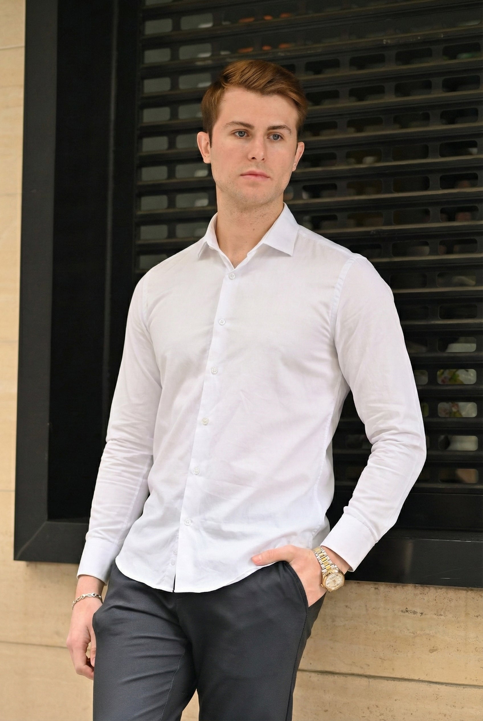 - Klasik ve Ofis Şıklığı: Profesyonel duruşunuzu destekleyecek beyaz, koyu lacivert düz gömlekler ve ikonik siyah çizgili erkek gömlek modelleri.